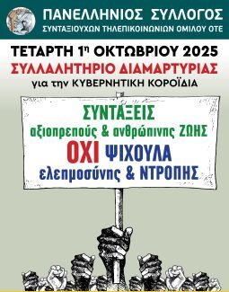 Read MoreΑρ. Πρωτ.: 24668/Φ14 — Αθήνα: 16/09/2025 Προς: – Μελη Δ.Συμβουλίου Π.Σ.Σ.Τ.Ο – ΟΤΕ– Περιφ. Τμήματα Π.Σ.Σ.Τ.Ο – ΟΤΕ Θέμα: ΗΛΕΚΤΡΟΝΙΚΗ
