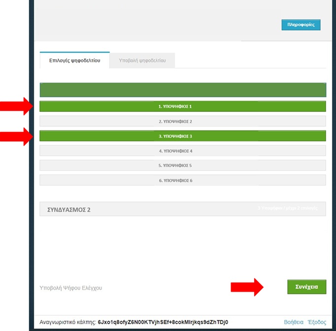 - Η επιλογή γίνεται πατώντας πάνω στο όνομα του συνδυασμού/υποψηφίου.