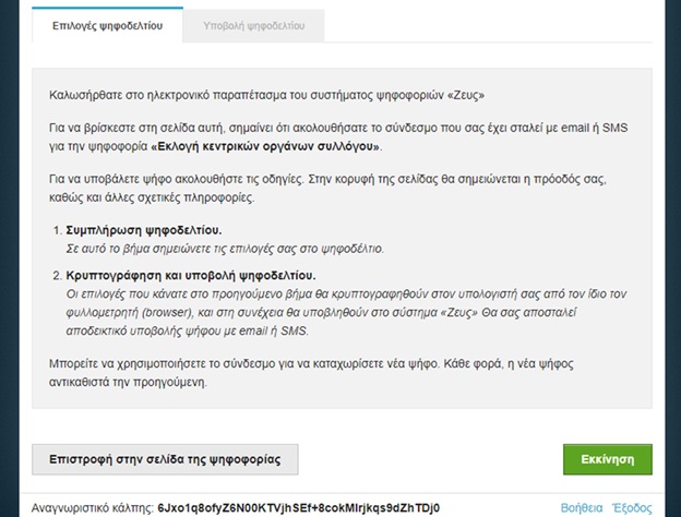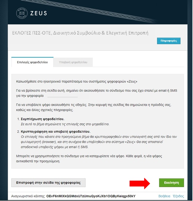 Αφού διαβάσετε τις οδηγίες για τη συμπλήρωση και υποβολή του ψηφοδελτίου, επιλέγετε «Εκκίνηση».