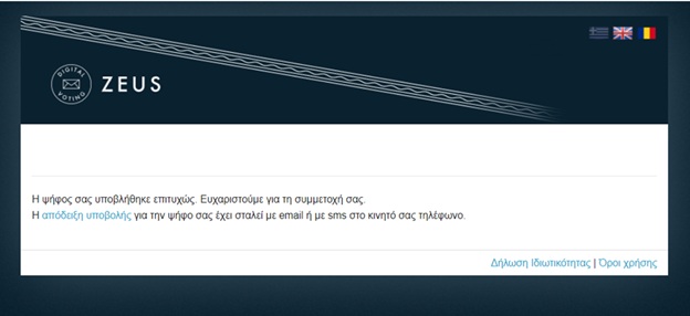 Όταν ολοκληρωθεί η διαδικασία, το σύστημα θα σας βγάλει την οθόνη επιβεβαίωσης επιτυχούς ψήφισης.