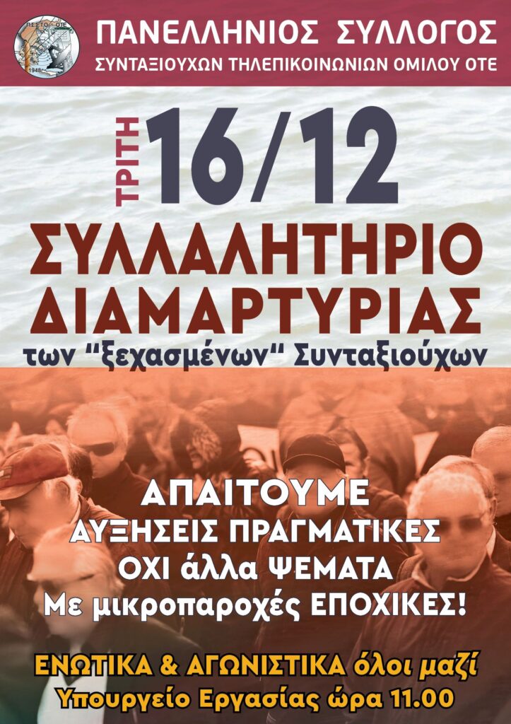 Σας κοινοποιούμε σε Ηλεκτρονική μορφή τις αφίσες του Συλλαλητηρίου και παρακαλούμε για την ενημέρωση ΟΛΩΝ των μελών του Τμήματός σας με κάθε δυνατό και πρόσφορο τρόπο, γιατί τα προβλήματα και η οικονομική μας κατάσταση απαιτεί: